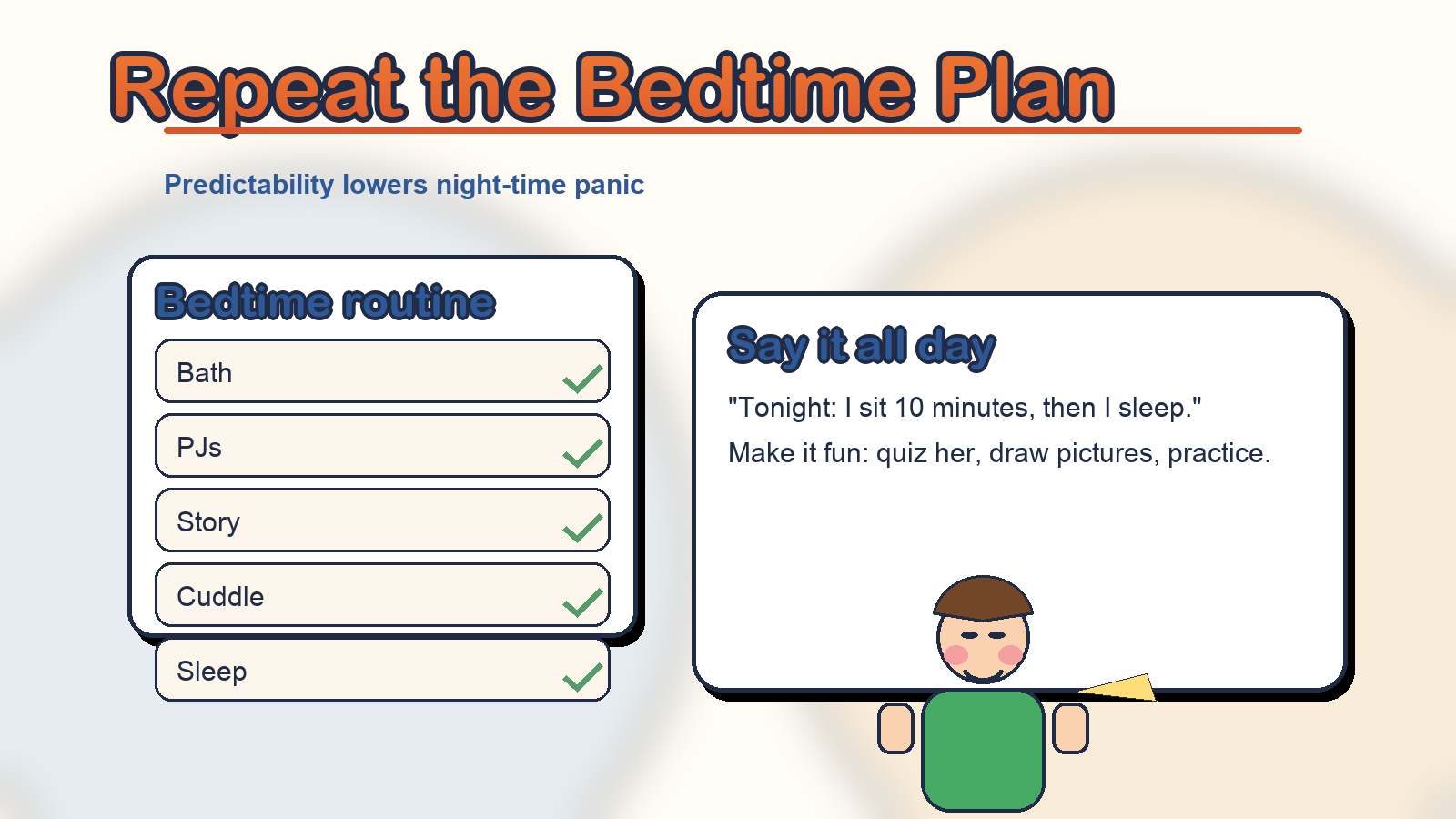 The point is to make the night feel predictable again—so your child can let go, and you can sleep too.
