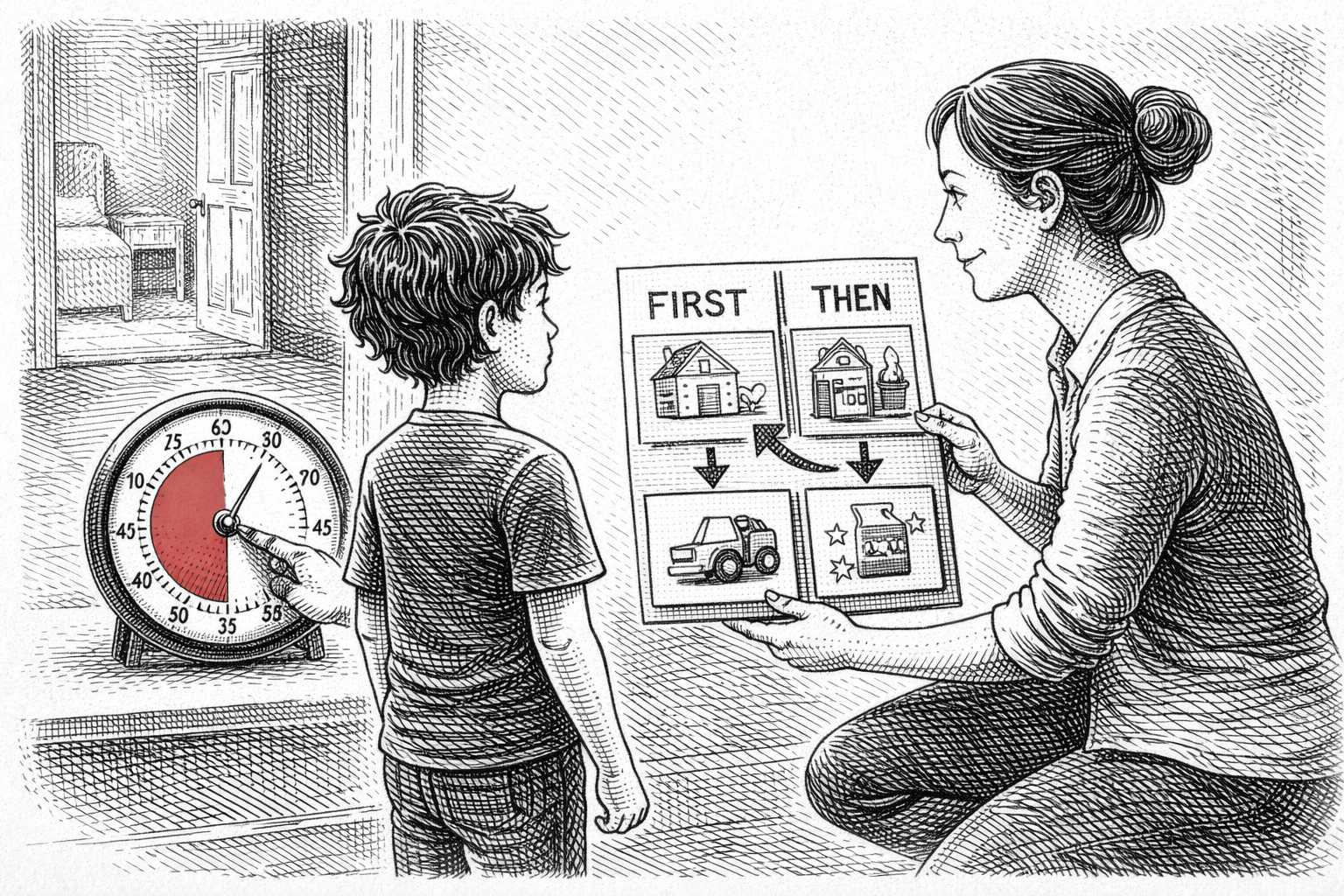 When time is visible and the next step is clear, the nervous system settles enough to try again. That’s why tools like a visual timer and a first/then board can change a day without turning it into a battle.